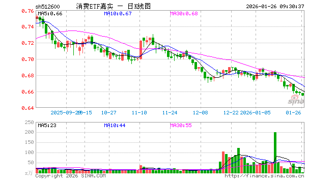 消费ETF嘉实(512600)开盘涨0.00%, 重仓股伊利股份涨0.04%, 贵州茅台涨0.26%